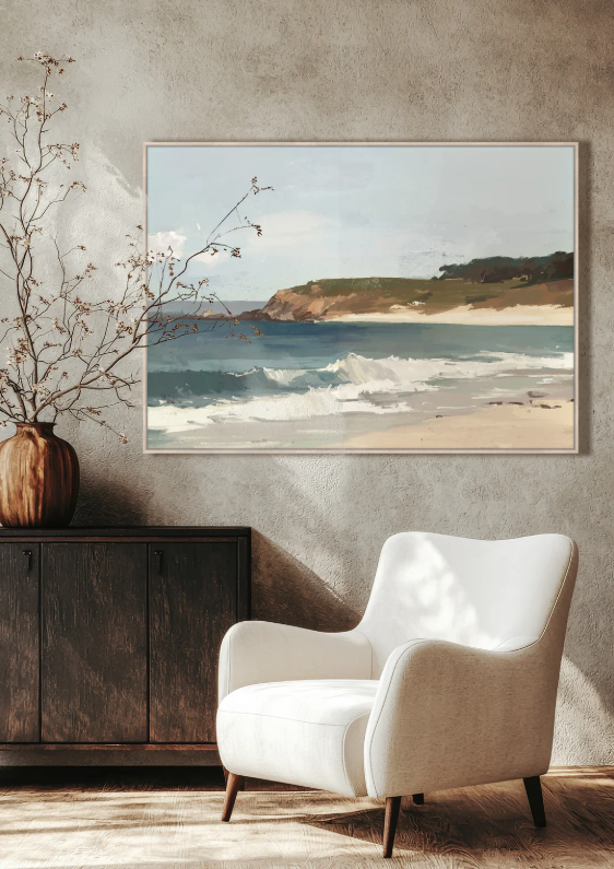 Let your space exhale with the gentle rhythm of coastal calm. Part of our Curated Wall Art collection, the Coffee Bay Art in Seafoam is a visual lullaby - soft, sweeping, and serene. Inspired by the tranquil shores of South Africa’s eastern coastline, this artwork captures the essence of misty mornings and ocean breezes, where land meets sky in a quiet embrace.