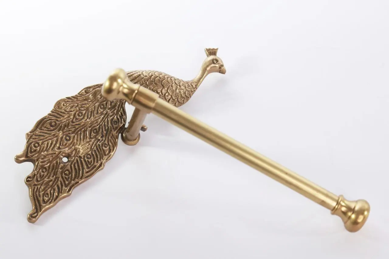 This refined toilet paper holder marries function with decorative artistry through its elegant peacock design. Finished in warm antique brass, it develops a distinguished patina that deepens with time, adding authentic character to your bathroom sanctuary. The sculptural form transforms a practical essential into a focal point worthy of display. Whether anchoring a spa-like retreat or complementing eclectic décor, this piece demonstrates that luxury lives in the details. A timeless accent that elevates everyday moments.