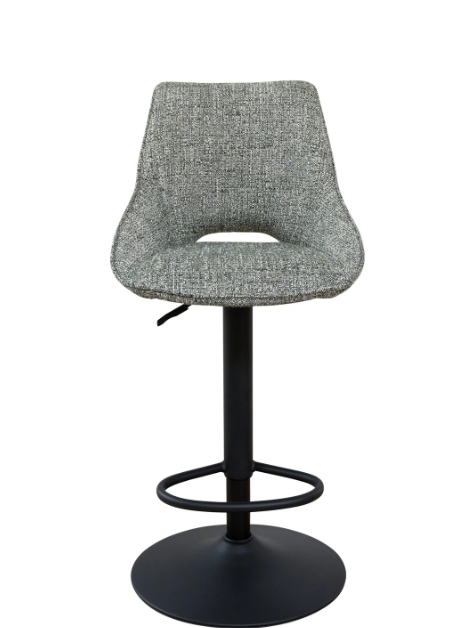 - Upholstered bar chair with height adjustable steel base covered in luxury Cosmopolitan fabric. (100% Polyester)