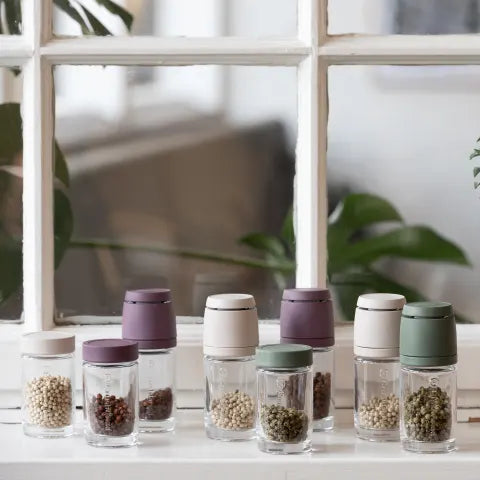 Small but mighty, this Mini Grinder Set keeps your table clean and stylish. Housed in a neat cruet to stop dust, the grinders are easy to pick up and move together — perfect for seasoning on the go. Simple and functional, they deliver a consistent grind every time.