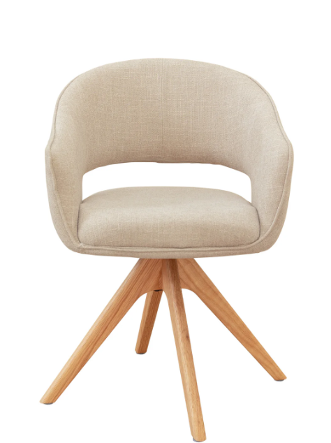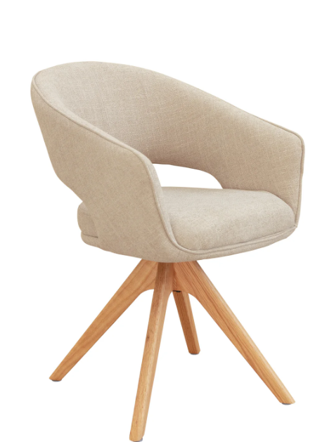 • Upholstered swivel dining chair covered with Luxury Global fabric (100% Polyester), solid oak legs.