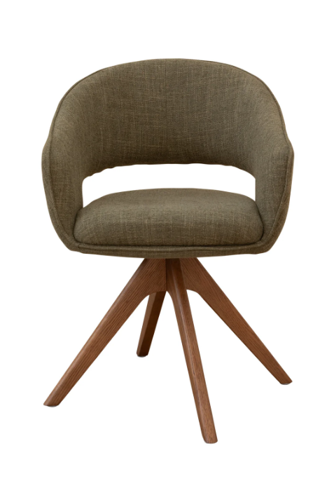 - Upholstered swivel dining chair covered with Luxury Global fabric (100% Polyester), solid oak legs.