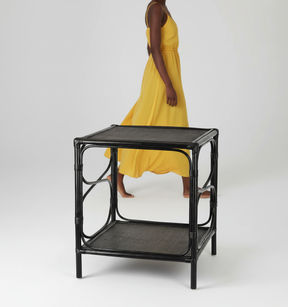 The Black Rattan Side Table combines sleek design with natural texture, measuring 50 x 50 x 58 cm. Its refined black finish enhances the rattan’s organic feel, offering a sophisticated accent piece that fits seamlessly into modern and classic interiors. Ideal for complementing your living space with understated elegance and practical surface area.