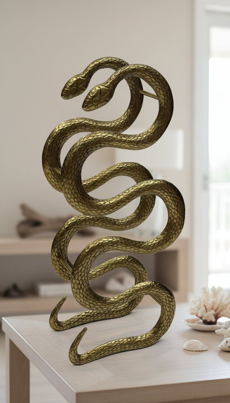Coiled and ready to serve. This sculptural bottle holder brings a touch of drama to your table, bar, or shelf with its sinuous form and striking presence. Perfect for displaying a favorite wine, spirits, or decorative bottle, it transforms everyday storage into a conversation piece. Crafted with attention to detail, it pairs beautifully with modern and eclectic interiors alike.